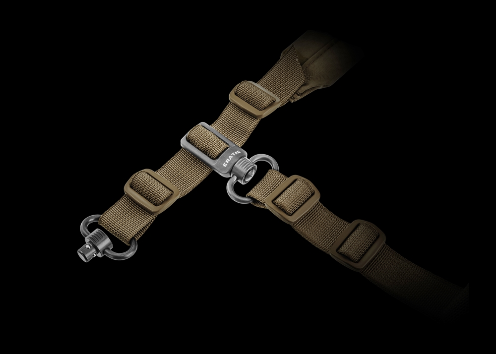 offre la possibilité d'utiliser une sangle 2 points comme sangle 1 point si nécessaire. La barrette centrale interrompue permet de l'enfiler ultérieurement dans la ceinture.