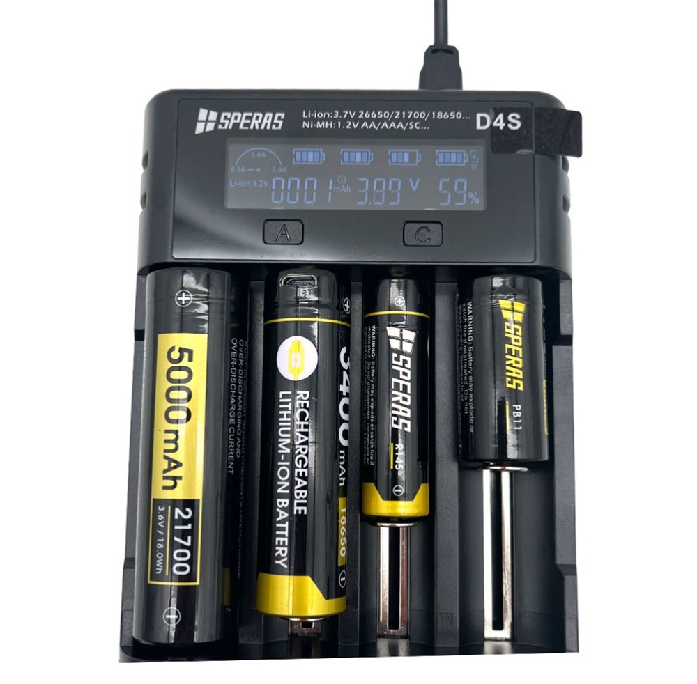 Chargeur de batterie, Speras Mod. D4S avec écran, 4 slots